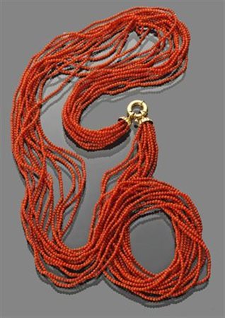 COLLANA Collana composta da dodici fili di corallo . Fermaglio in oro giallo...