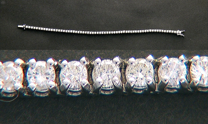 BRACCIALE TENNIS. In oro bianco 18 kt interamente percorso da diamanti taglio brillante per tot. cts. 3,30 ca. entro castoni a quattro griffes.