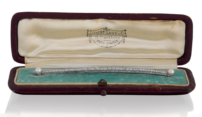 SPILLA SPILLA INIZIO XX SECOLO. In platino realizzata a barretta con...
