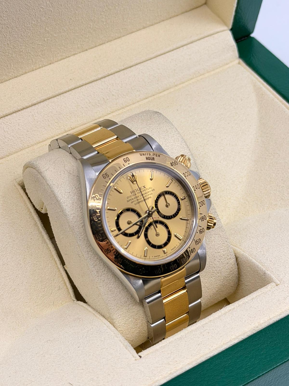 Marca Rolex Modello (Orologio) Daytona Numero di referenza 16523 6 rovescio Carica Automatico Anno 1992 Materiale della cassa Oro/Acciaio Materiale cinturino Oro/acciaio Corredo documenti originali, no box Carica Automatico Cassa Materiale della cassa Oro/Acciaio Diametro 40 mm Impermeabile 10 ATM Materiale lunetta Oro giallo Vetro Vetro zaffiro Cinturino Materiale cinturino Oro/acciaio Colore cinturino Oro/acciaio Chiusura Déployante Materiale chiusura Oro/Acciaio - COMMISSIONE D’ASTA 25%