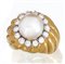 ANELLO. In oro giallo e bianco 18 kt centrato da perla coltivata South Sea di mm 10 ca. entro cornice in diamanti taglio brillante per tot. cts. 1,20 ca. su montatura costolata.
