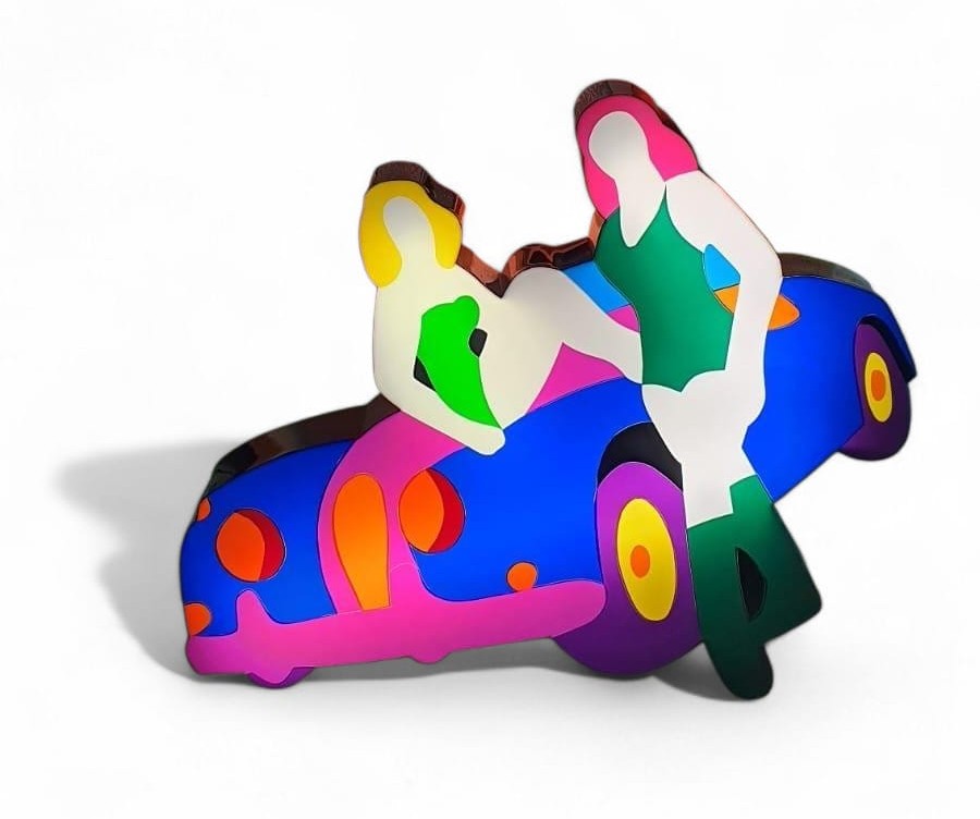 Scultura luminosa da appoggio, perspex e neon, cm 104x92x12
