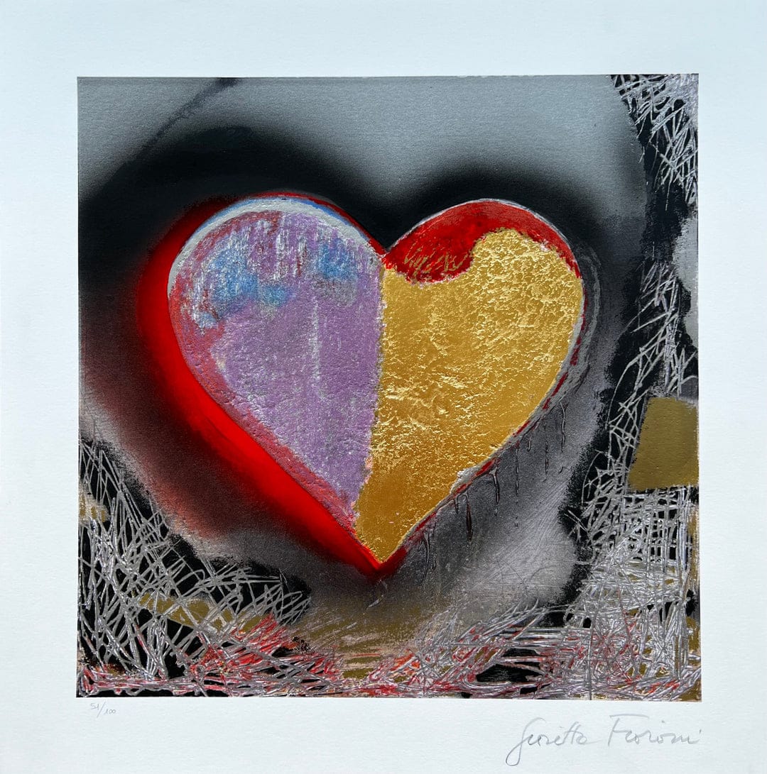 Serigrafia a colori su carta con interventi manuali in foglia oro, cm 50x50