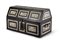 Ebonized wood casket inlaid with pyro-engraved bone plaques depicting hunting scenes, within frames decorated with stylized motifs (25 × 43 × 21 cm) (defects and restorations).