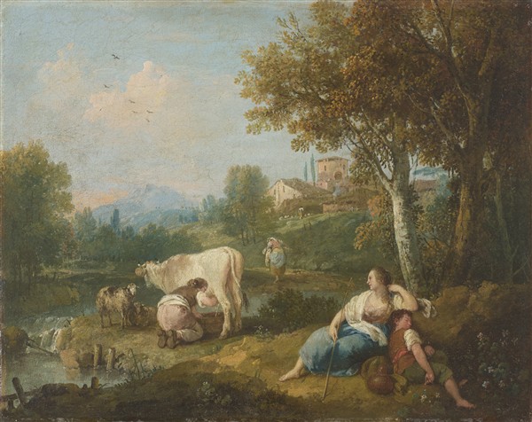 "Paesaggio con pastori e armenti presso un fiume (La mungitura)"