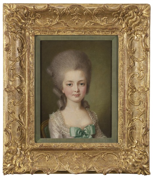 formerly inscribed on the reverse: "par Millot ...contesse d'Arthois / en may 1779 / Amable Emile De Chastillon Duchesse de Crussol / née le 9 juillet 1761 / marie le 17 avril 1777"