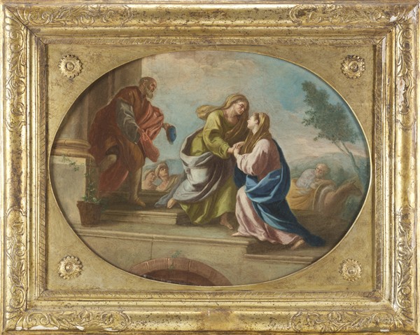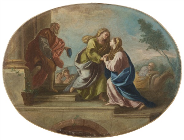 typewritten label applied on the back: Autore: Giacinto Diana / Titolo: La ''Visitazione'' / Dal Palazzo Serra di Cassano a Monte di Dio - Napoli / Vedi: ''Storia di Napoli'', Vol. VIII, pag. 541
