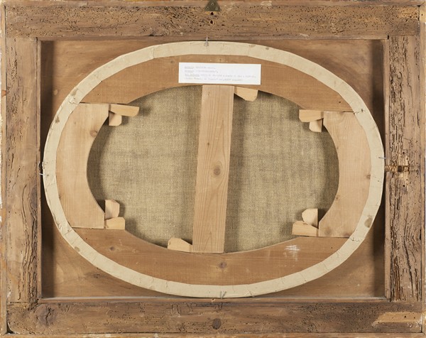 etichetta dattiloscritta applicata sul reto: Autore: Giacinto Diana / Titolo: La ''Visitazione'' / Dal Palazzo Serra di Cassano a Monte di Dio - Napoli / Vedi: ''Storia di Napoli'', Vol. VIII, pag. 541