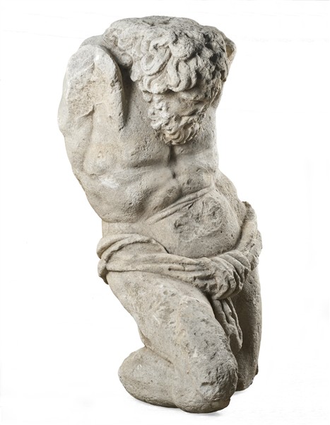 Lotto 50 | Scultore del secolo XVI-XVII Telamone statuario in pietra arenaria (pietra di V