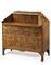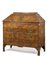 A walnut and walnut burl with rosewood inlay drop-front desk, featuring a front with three drawers, a fall-front revealing four small compartments, and a raised section with a small drawer; metal mounts and shaped feet. Lombardy, late 18th century (121 × 120 × 52 cm) (losses and restorations).