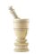 Mortaio con pestello in avorio tornito e scanalato.