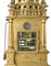 Orologio da appoggio in ottone e rame dorato con cassa a torre a base quadrata. Nella parte anteriore due quadranti argentati, rispettivamente per le ore e per i quarti d'ora, decorati a smalto cloissonné. Nella parte posteriore altri due quadranti della stessa tipologia per indicare le varie fasi della suoneria. A lato è presente un quadrantino per la sveglia (h. cm 36) (mancanze, sostituzioni e restauri)