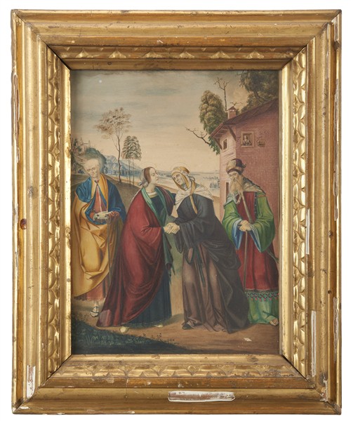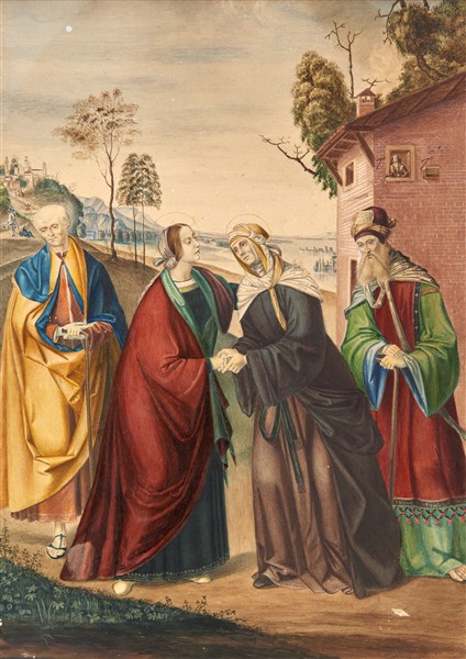 Artista preraffaellita, da Domenico Panetti "Visitazione" acquerello (cm 43,5x