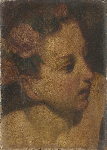 Maestro veneto del secolo XVII "Volto femminile coronato di fiori" olio su tel