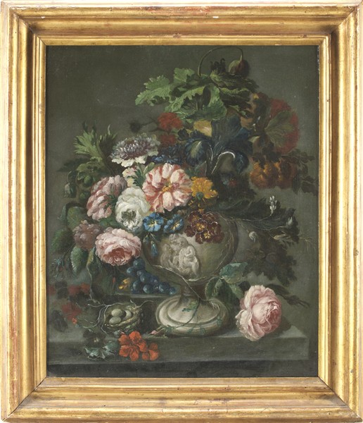 Scuola francese della metà del secolo XVIII "Vaso di fiori" olio su tela (cm 6