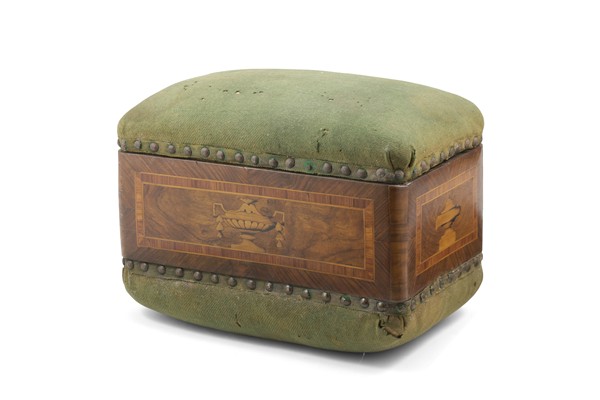 Arte lombarda della fine del secolo XVIII - inizio secolo XIX. Cofanetto in legno intarsiato e filettato con rivestimento in velluto (cm 32x24x20) (difetti)