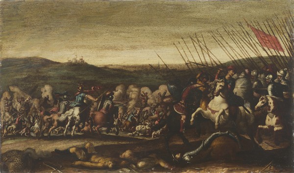 "Scena di battaglia con cavaliere moro"