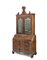 Trumeau veneered in walnut and walnut burl, inlaid with light woods and ebonized edges. Upper section with two mirrored doors and interior panels painted with landscapes featuring ruins; broken-line cornice. Lower section with three drawers beneath a half-length drawer and a sliding panel revealing six small compartments. Lombardy, 18th century (116 × 245 × 56 cm; restorations, replacements, upper and lower sections not matching).