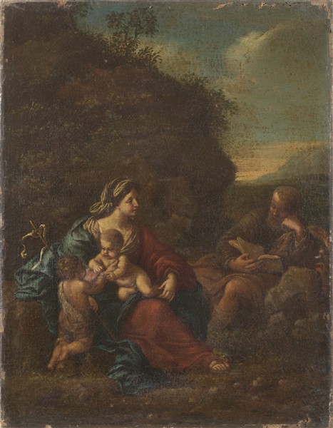 Scuola romana del secolo XVII "Sacra Famiglia con san Giovannino" olio su tela