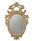 Specchiera di forma ovale in legno intagliato e dorato, cimasa centrata da cartella, ai lati pendenti di foglie e fiori tra volatili, grembiale a motivi floreali. Secolo XVIII (cm 137x92) (difetti)