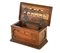 Piccolo cofano da archivio in noce intagliato. Il coperchio rivela etichette ca
