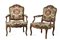 Pair of carved walnut armchairs, backrest surmounted by leaves and flowers, pholstered in fabric. 18th century (defects)