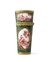 Arte francese, fine secolo XVIII. Etui in bronzo e smalti verdi a grisaille raffiguranti paesaggi e scene popolari entro riserve dorate a rilievo (h. cm 10) (difetti)