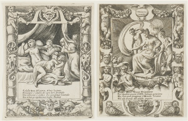 Lotto composto da una coppia di bulini di Giulio Bonasone dalla serie "Amori Sd