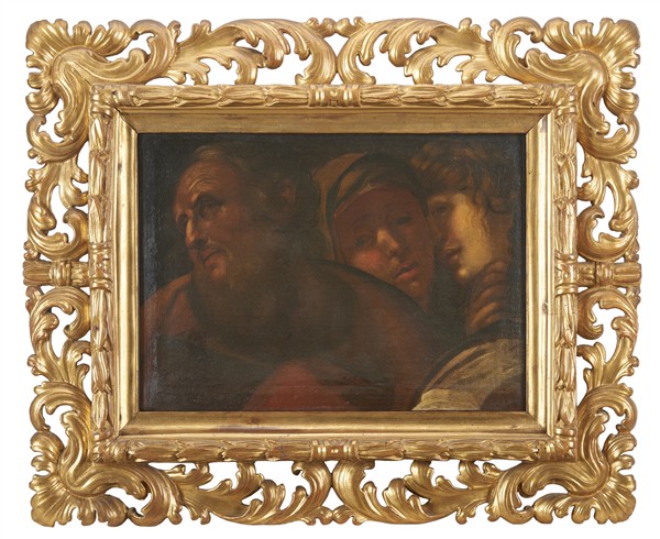 Scuola della seconda metà del secolo XVII "Tre personaggi" olio su tela (cm 39