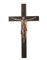 Crucifix carved in boxwood, mounted on an ebonized wooden cross with later brass inlay.