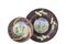 Manufactured in Pavia, 18th century. Lot consisting of a bowl and a plate in polychrome painted majolica with a landscape and small castle within a reserve on a manganese sponged background (16.5 and 23 cm in diameter) (defects)