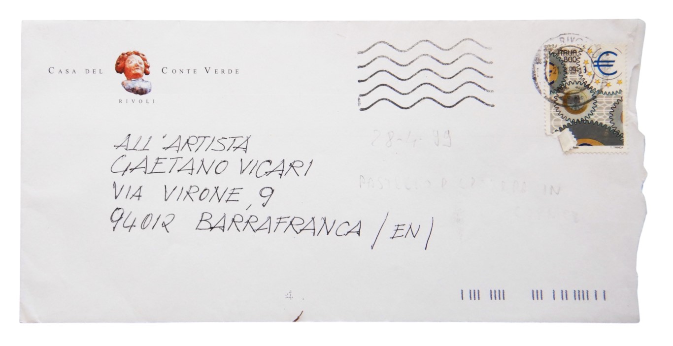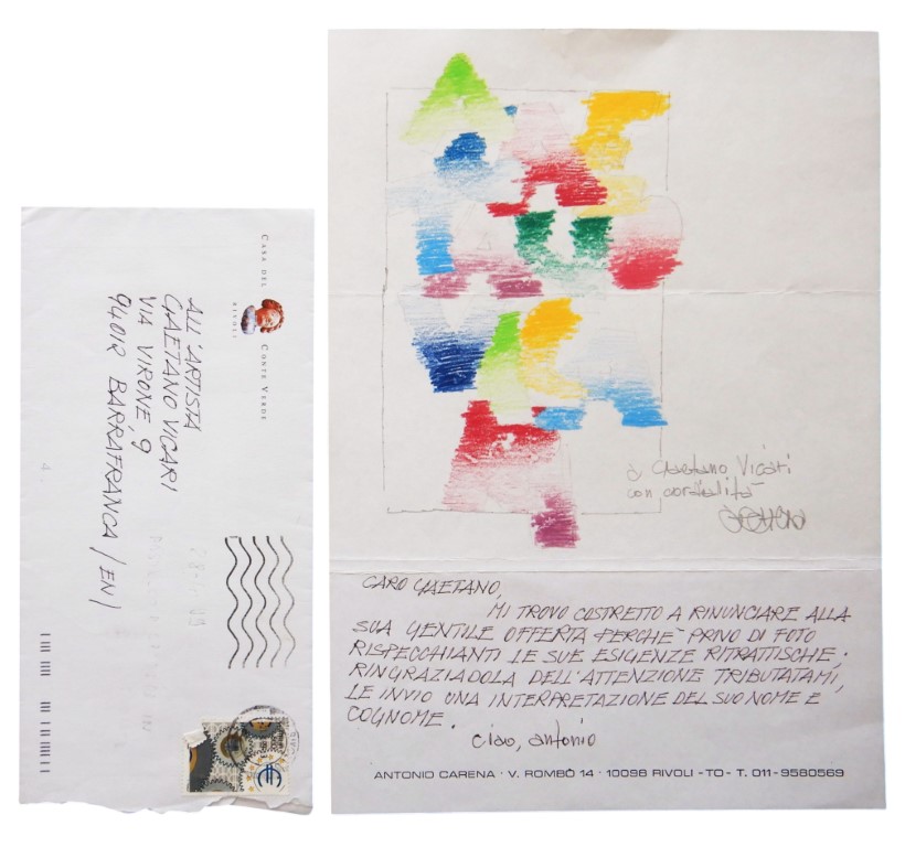 disegno con dedica e firma, accompagnato dalla busta affrancata originale