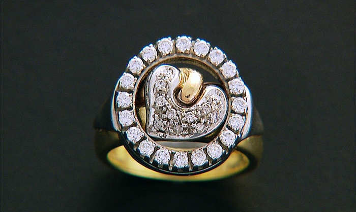 Lotto 452 | ANELLO ANELLO. In oro giallo, rosa e bianco 18 kt sommità circolare centrata...