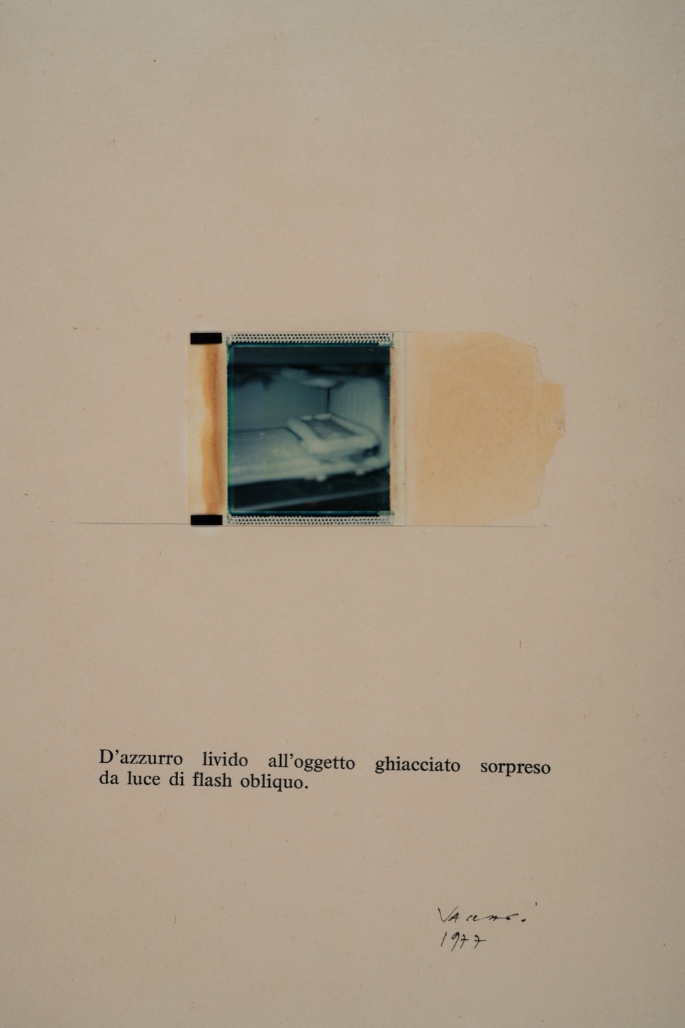 Franco Vaccari (1936 - 2025) - D'azzurro livido all'oggetto ghiacciato sorpreso da luce di flash obliquo, 1977