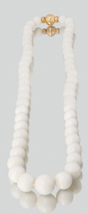 COLLANA COLLANA. Ad un filo di sfere in corallo bianco disposte in gradazione...