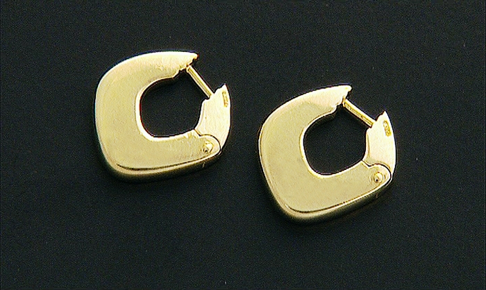 COPPIA DI ORECCHINI DI POMELLATO. In oro giallo 18 kt perno e clip, collezione "Pattern one" realizzati a motivi piatti in oro liscio.
