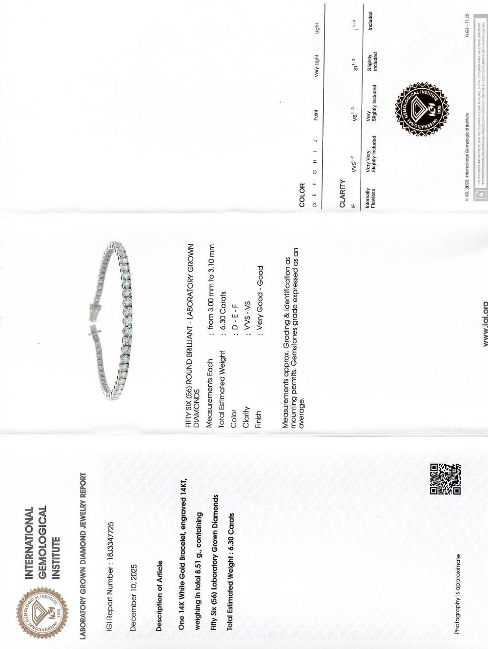 BRACCIALETTO TENNIS IN ORO 14K CON DIAMANTI LAB-GROWN PER 6,30 CT COLORE D-E-F PUREZZA VVS-VS – CERTIFICATO IGI - COMMISSIONE D’ASTA 25%