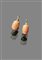 COPPIA DI ORECCHINI Coppia orecchini in oro giallo con due coralli rosa ovali...