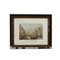 STAMPA COLORATA raffigurante parata "London Bridge" dentro cornice in legno e pastiglia dorata , usure del tempo e mancanze Inghilterra primi 900' h cm 46 x 58
