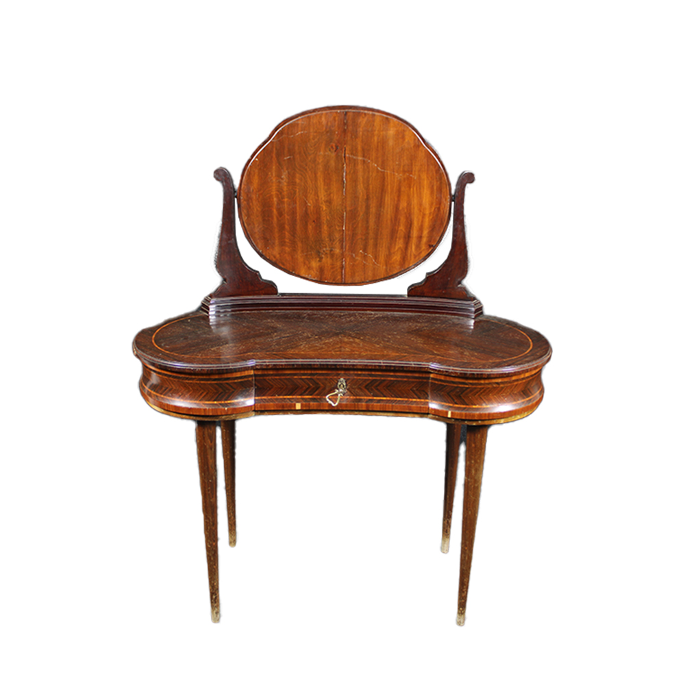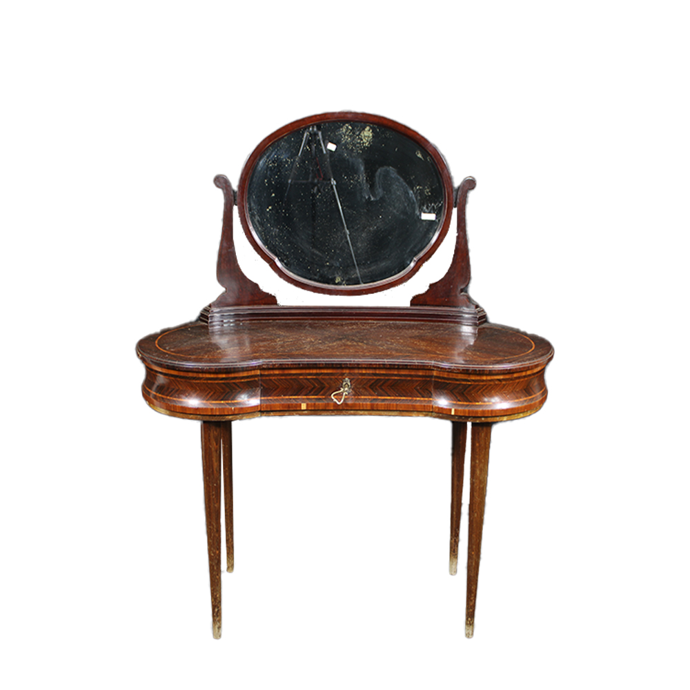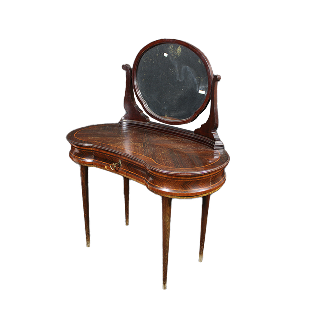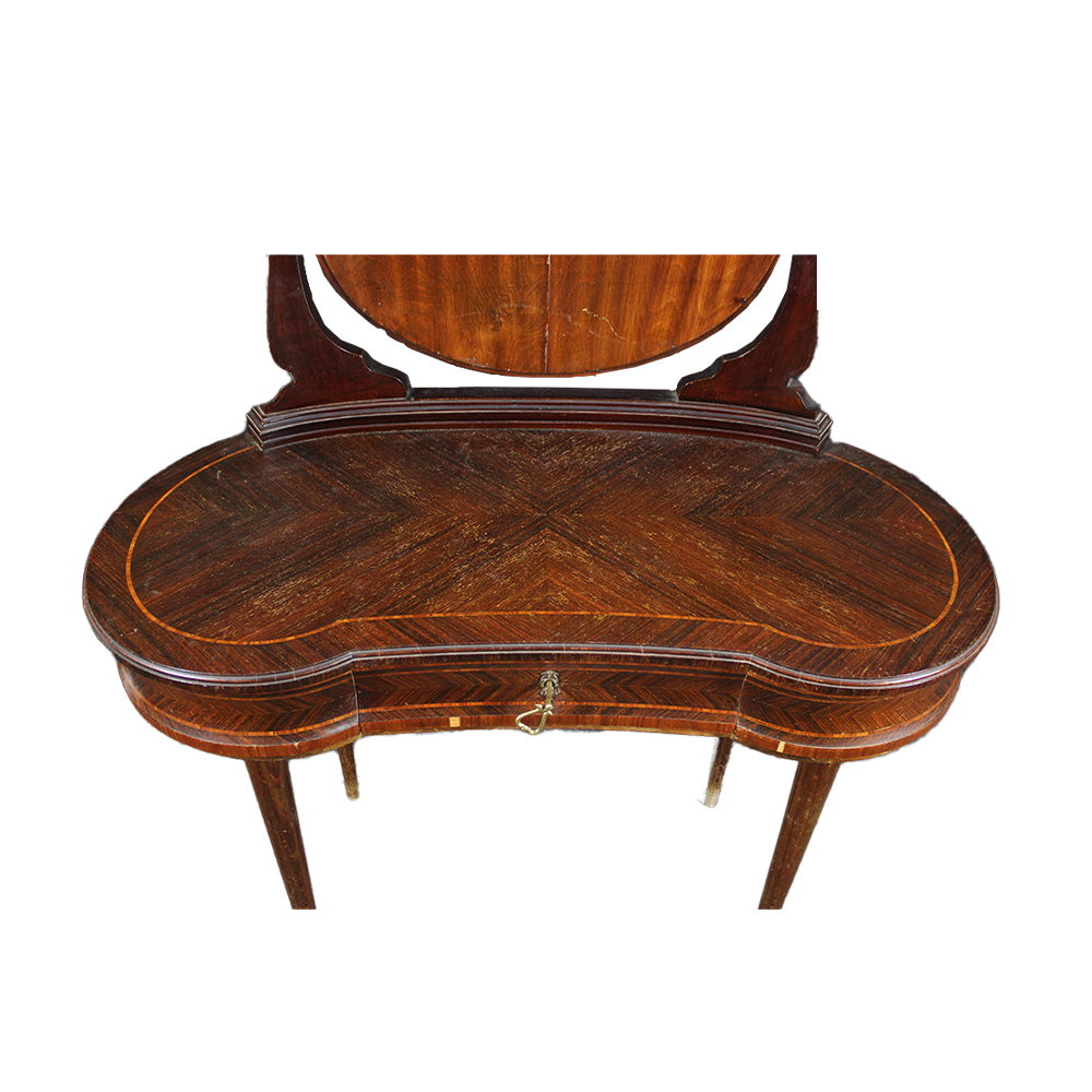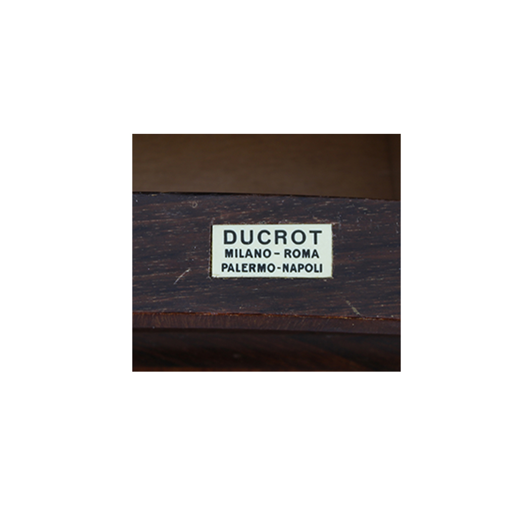 TOLETTA A FAGIOLO in palissandro con perfili in legno di rosa manifattura Ducrot come da targhetta su cassetto Palermo metà XX secolo 1867-1942 h cm 132 x 110 x 56