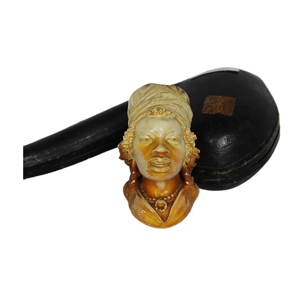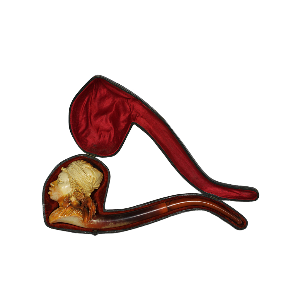 LOTTO COMPOSTO DA una pipa in schiuma raffigurante donna e un binocolo da teatro in metallo e osso Francia XIX secolo h cm 10 x 26 - h cm 7 x 11