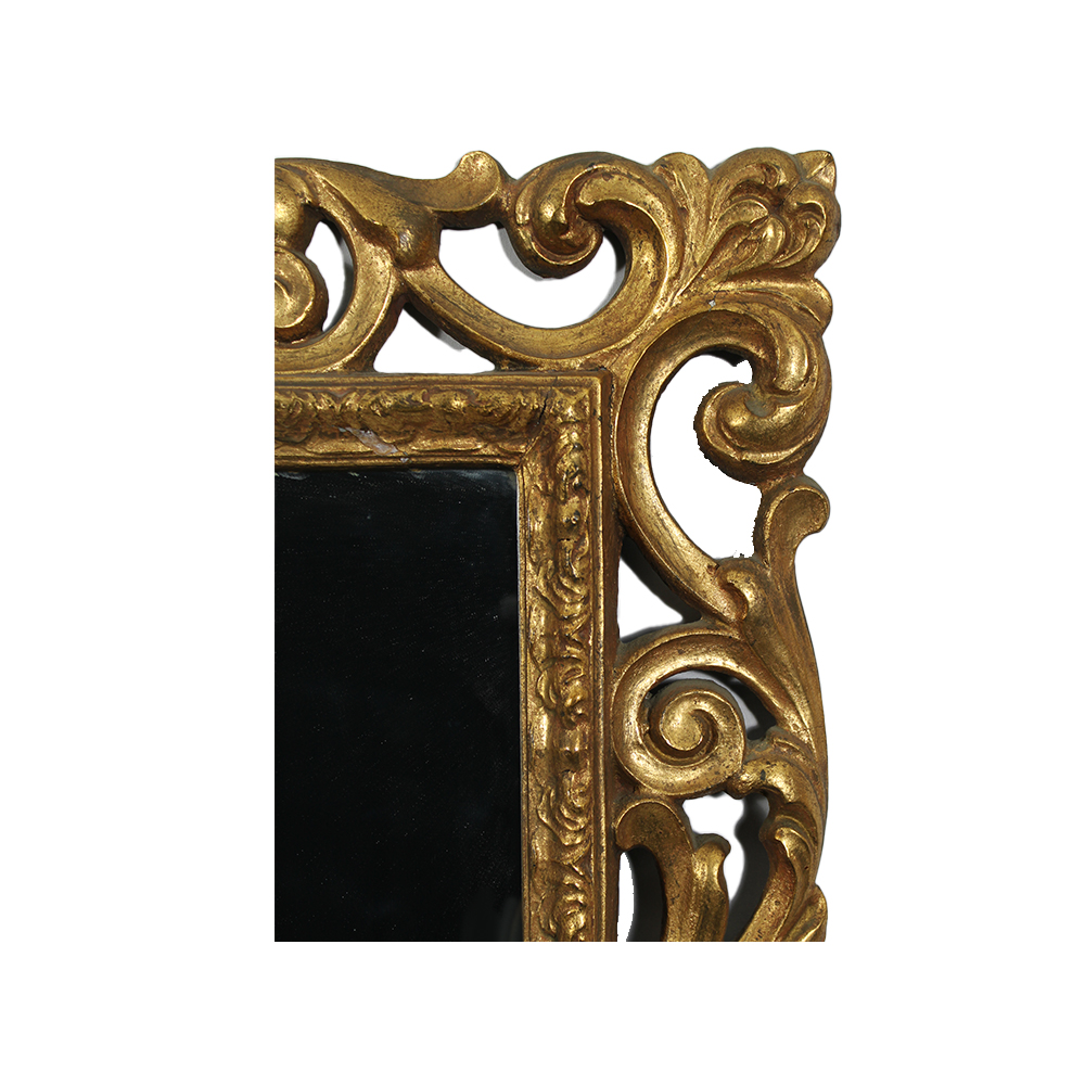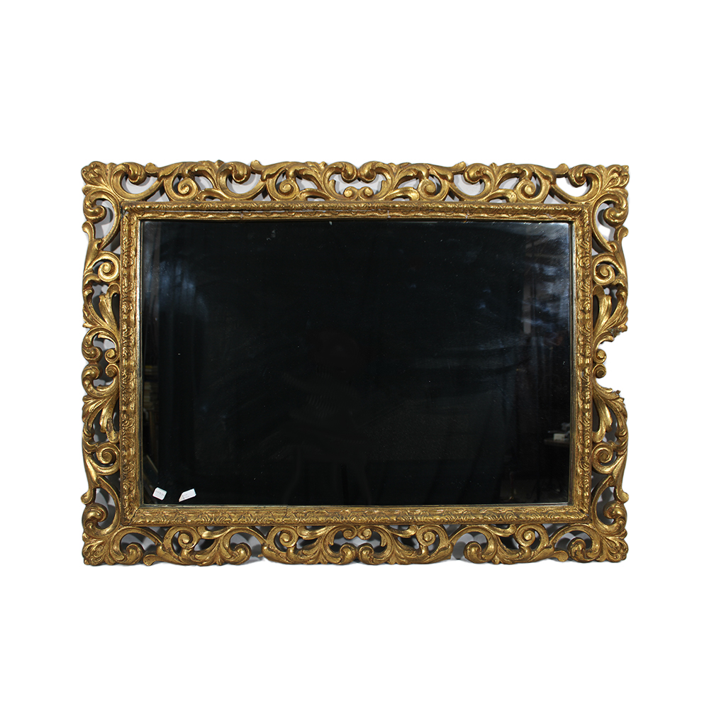 SPECCHIERA in legno traforato scolpito e pastiglia dorata, usure del tempo e mancanze maestranze siciliane XIX secolo h cm 82 x 113
