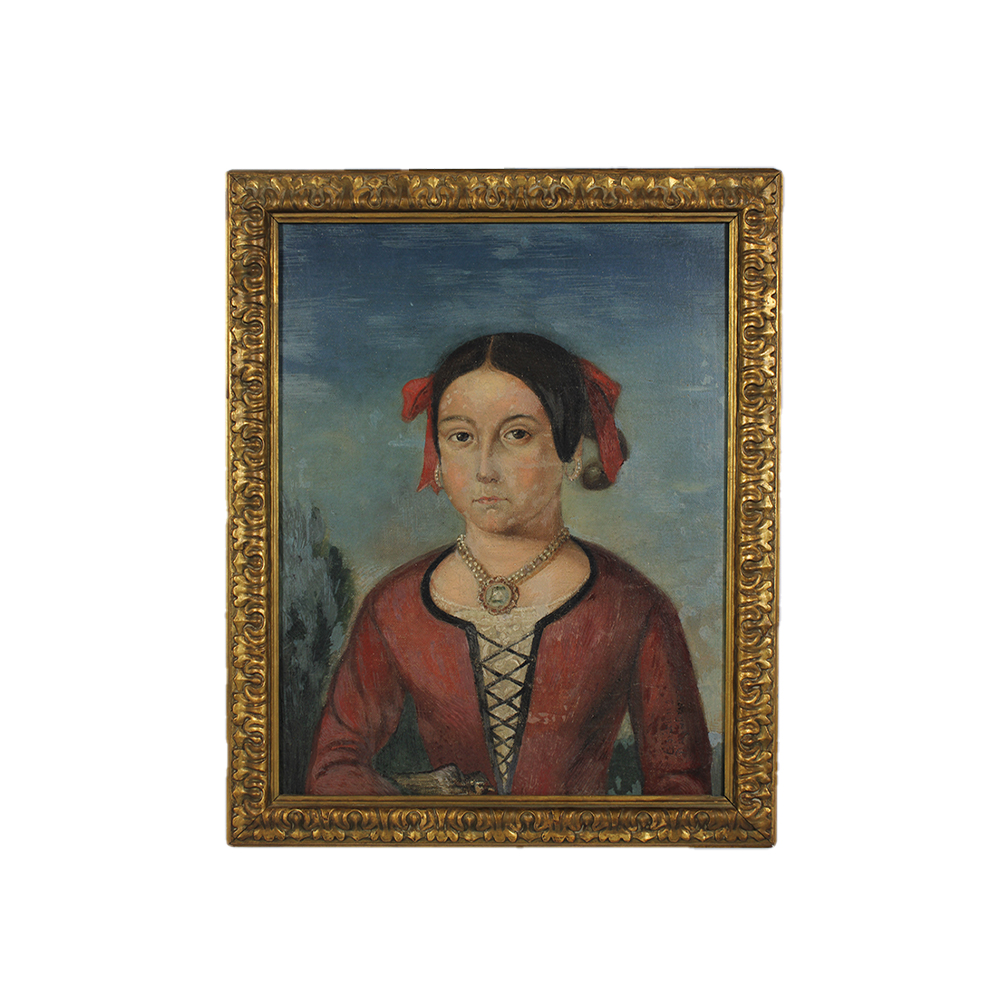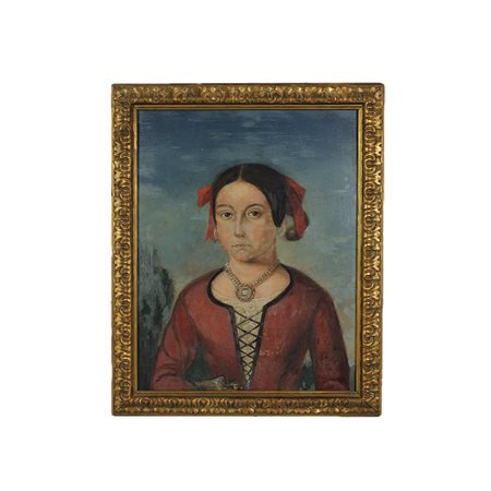 OLIO SU TELA raffigurante figura femminile dentro cornice in legno dorato firmato in basso Giovanni D'Agostino h cm 46 x 36 - cornice h cm 52,5 x 43