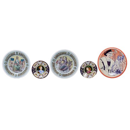 OTTO PIATTI DA COLLEZIONE in porcellana dipinta in policromia e lumeggiature in oro diverse manifatture XX secolo misure varie