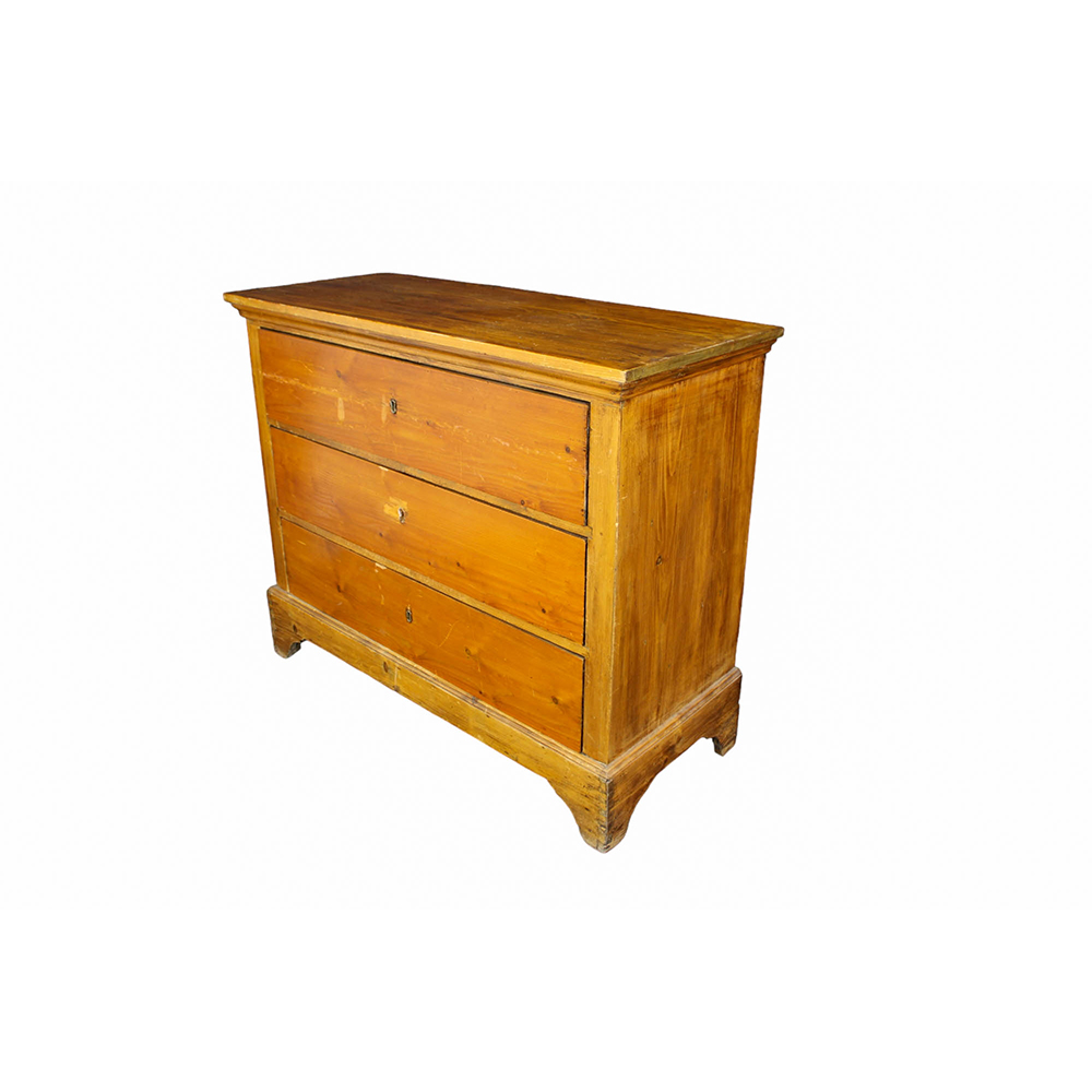 CASSETTONE in legno di pino pece a 3 cassetti Sicilia XIX secolo h cm 113 x 138 x 57