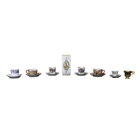 LOTTO COMPOSTO DA un vaso manifattura longo sei tazzine con piattini e una tazzina in porcellana dipinta e lumeggiature in oro diverse manifatture tra cui Doccia Ginori XIX/XX secolo misure varie