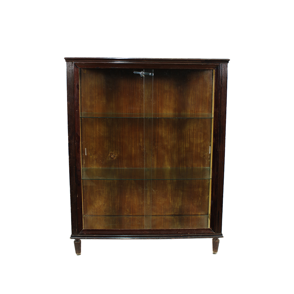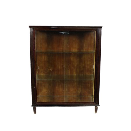 CRISTALLIERA in legno di mogano a due ante scorrevoli manifattura siciliana primi 900 h cm 150 x 116 x 40