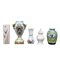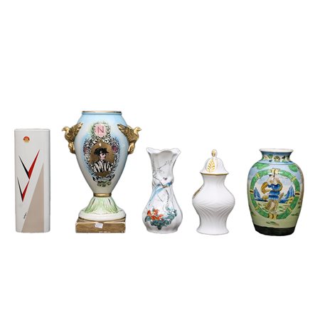 LOTTO COMPOSTO DA dieci vasi in porcellana policroma raffigurazioni e manifattura varie XX secolo misure varie