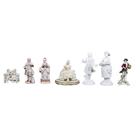 LOTTO COMPOSTO DA sette sculture in porcellana policroma raffiguranti personaggi vari misure varie