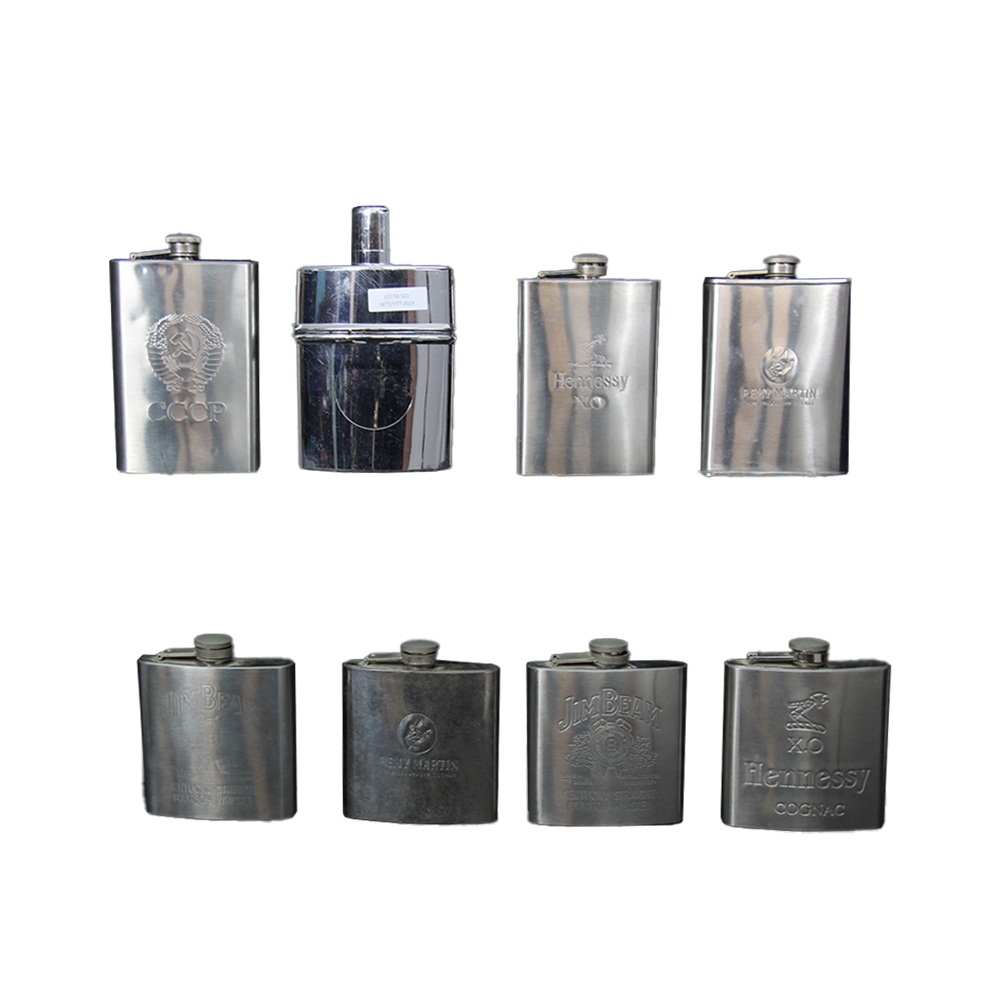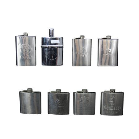 LOTTO COMPOSTO DA 8 fiaschette in metallo per whisky. Italia XX secolo misure varie